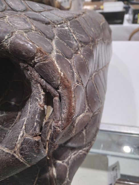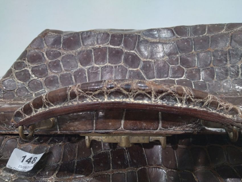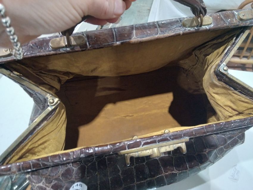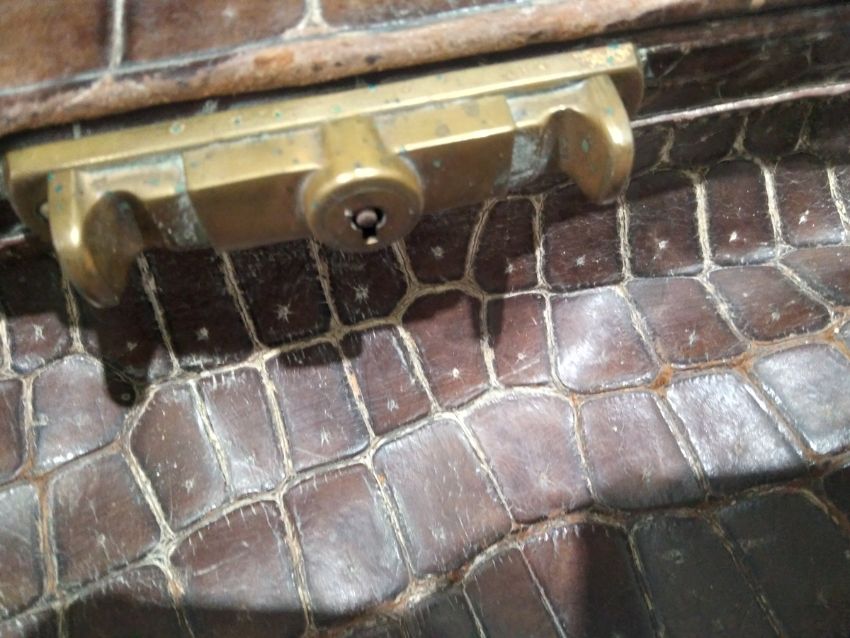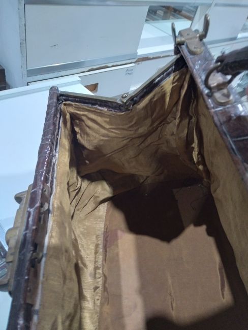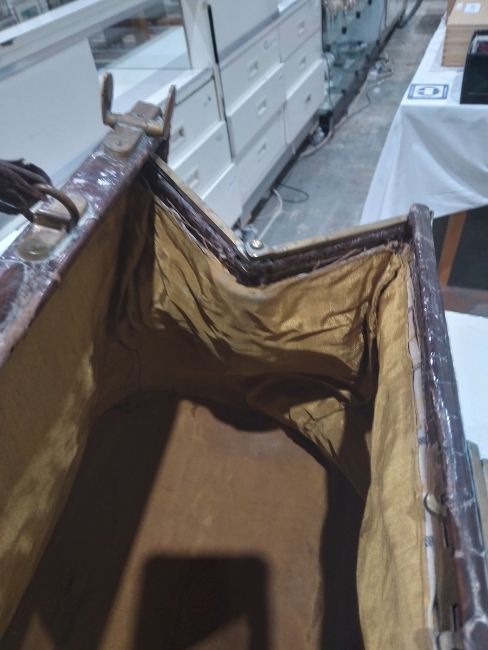 Generally in good condition. Wear as you would expect for age. There is a split to one side. The interior fabric has some stains but generally in good condition. Additional photos attached.