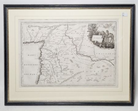 Etched map of Syria together with two hand-coloured engravings of parrots (3)