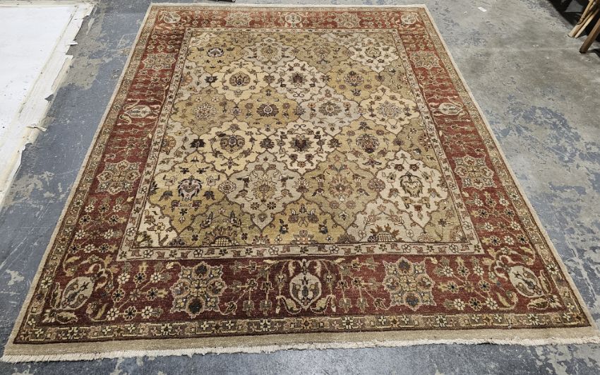 G.H. Frith Ltd Oriental cream ground rug with central floral lozenge pattern field, multiple floral borders 230cm x 192cm