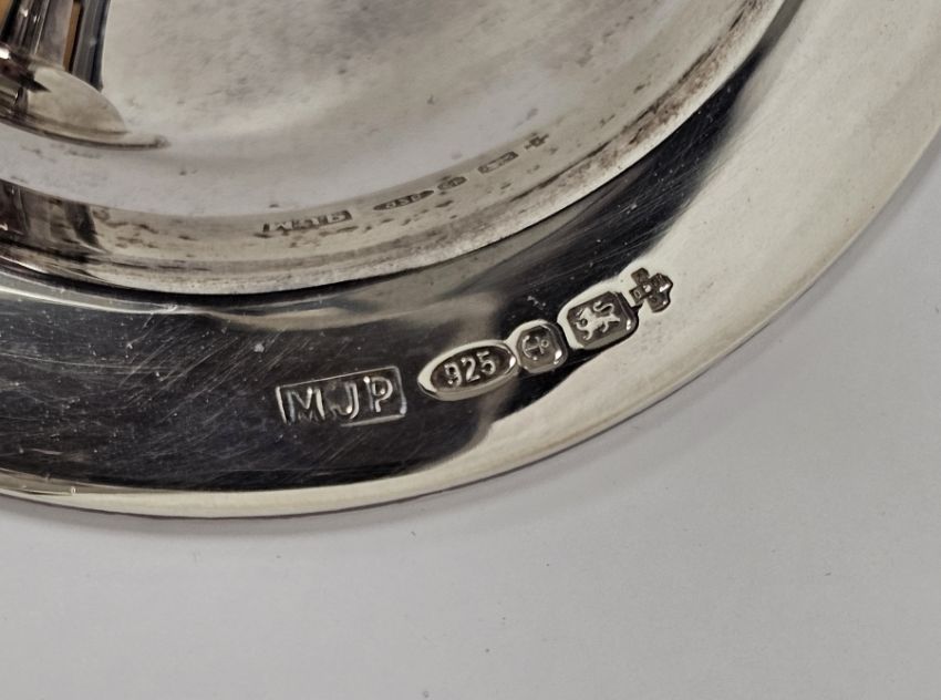 Pair of silver pricket candlesticks, Birmingham 2000, Martyn Pugh, in the Arts and Crafts manner with circular sconces, inverted tapering columns and circular bases, 25.5cm high, 18.5ozt