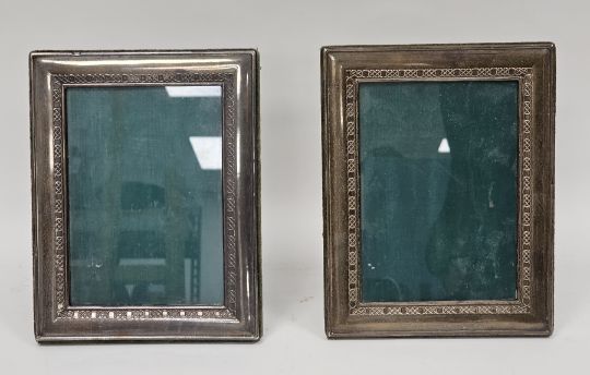 Pair of silver rectangular photograph frames, Sheffield 1992, Carrs of Sheffield, with green fabric covered easel backs, 22.5cm x 18cm (2)