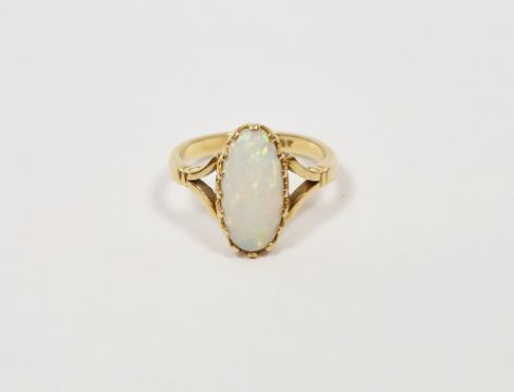 18ct gold and opal ring set oval claw set stone (size N1/2)  Condition Report approx weight is 4.0g