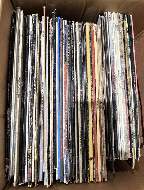 Mix of vinyl LPs and some 12" singles from artists such as David Bowie, The Pogues, The Beatles, Michael Jackson, Dire Straits, The Bangles, ABBA, China Crisis, Blind Faith (1 box)