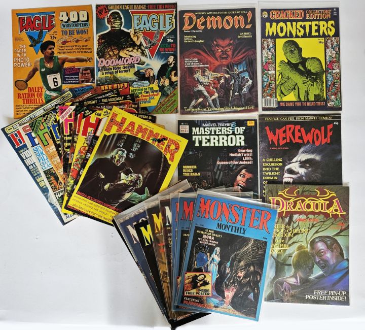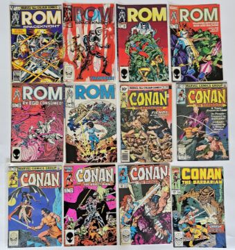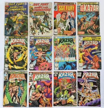 Marvel comics to include Shogun Warriors (1979-1980) #4, 5, 7-10, 12-19 together with ROM Spaceknight (1980- 1985) #2 (1st appearance of Firefall and Opal Android 5947), 49, 58,68, 69 and 73, Ka-zar Lord of the Hidden Jungle (1975) #11, Ka-zar the Savage (1982) #2, 3, 7, 8, 10, 11 (1st appearance of Belasco and Origin of Zabu the saber-toothed tiger), 18 and 20, Conan the Barbarian (1976-1990) #64, 122, 147, 191, 204 and 234, Sgt. Fury and his Howling Commandos (1968-1981) #63, 70 and 163 (38), quantity of late 1980's/early 1990's DC Comics first issues to include Green Lantern, Green Lantern Emerald Dawn, Green Lantern Emerald Dawn II, Return of the King Aquaman, Black Condor, Justice League Europe, The Legend of Wonder Woman, Wonder Woman Amazon vs Assassin, Aquaman Tide and Tide, The Ray, Demolition Man, Outsiders, The Butcher, Robin III, Thunderbolt, Justice Society of America, Legion of Superheroes, Zero Hour, Who is Damage, Outlaws, War of the Gods, The Return of Wild Dog, The Brave and the Bold and Team Titans together with Wonder Woman #250 and Arak Son of Thunder #7 (26) and a quantity of vintage comics and magazines to include Viz, Eagle #2 and 3, Thunderbirds the comic #2, 2000 AD featuring Judge Dredd #619-623, Monster Monthly #1-8, Halls of Horror, House of Horror, Demon!, Charlton Comics Monster Hunter #1, Empire, etc