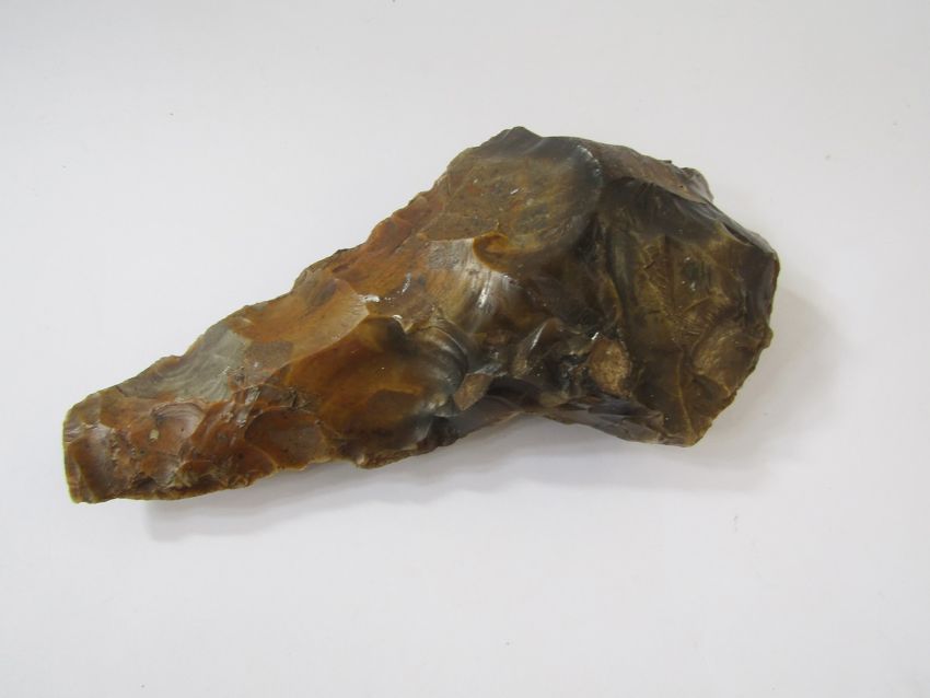 Paleolithic flint hand axe, 22cm long by 12cm wide