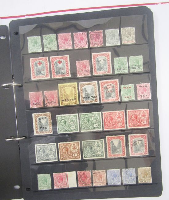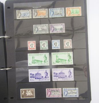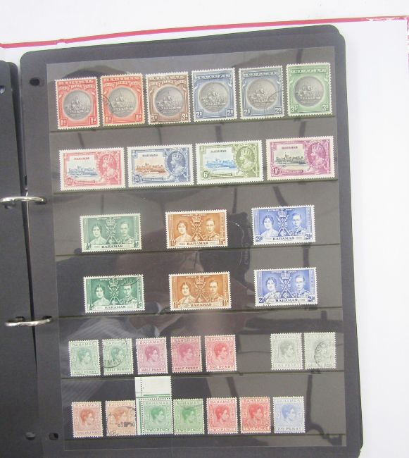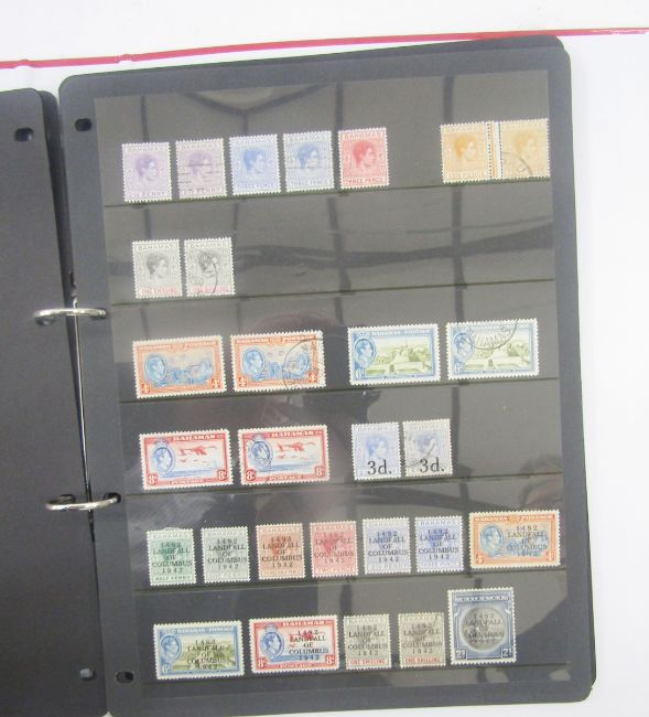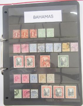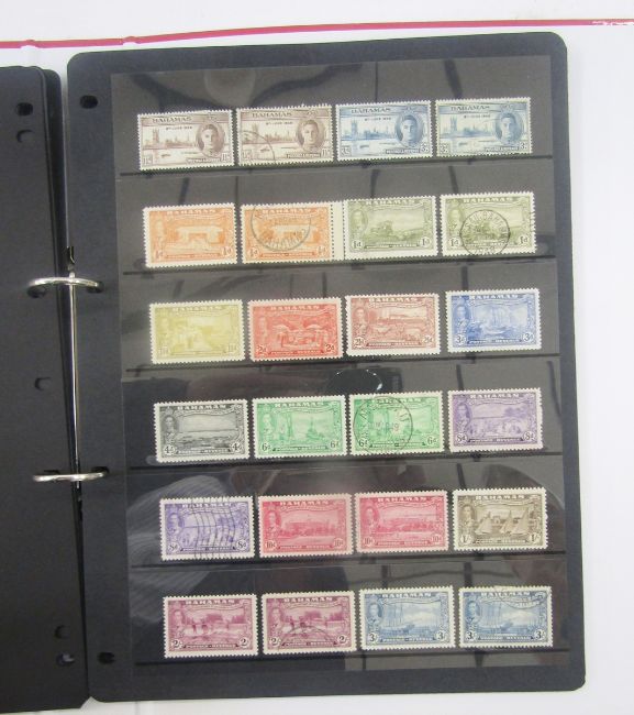Bahamas Stamps: QV-QEII collection in red folder of mint and used definitives and commemoratives up £1/$3 highest values, with KEVII/KGV to 3/-, numerous sets plus control numbers and blocks including unmounted mint ‘Columbus 450’ £1 SG 175 block of 4, cat £320.