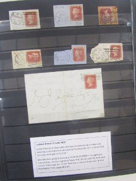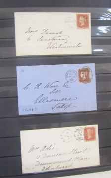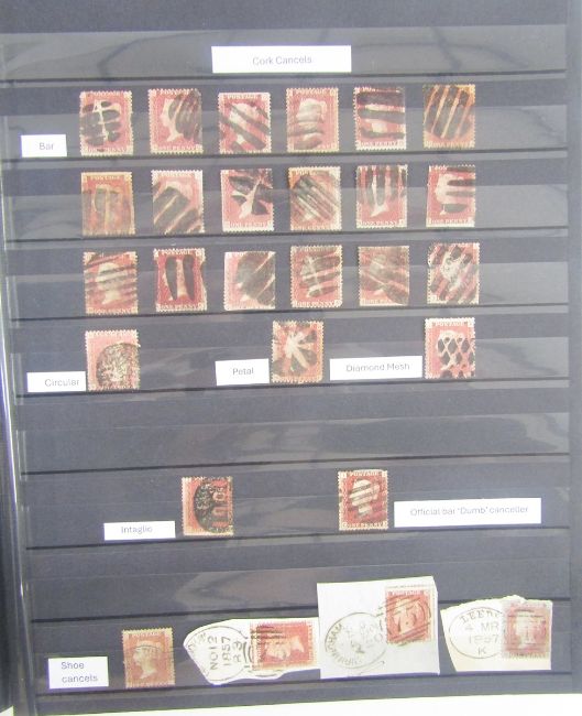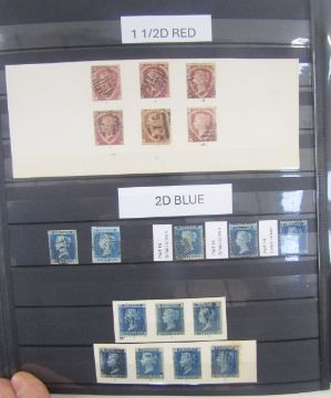 GB Stamps: Large 60-page ‘PRINZ’ A4 stock book over 2/3rds full of QV used line engraved from 1/2d red to 2d blue including first 1840s issues, with 1d blacks, red and black Maltese Cross, seen. 1d red plate numbered issues from 71-224, all halfpenny plates less 9, most 2d plates with perforation variations, large range of postmark interest with cuts and covers from all regions including Ireland, with specifics such as Channel Isles, various Edinburgh Brunswick Stars, ‘shoe’ and late fee cancels plus covers and Mulready 1d front, numeric ‘8’, Ivory head, perforation and watermark varieties, good lot, needs to be seen to be fully appreciated, 100s with SG cat in £1000s.