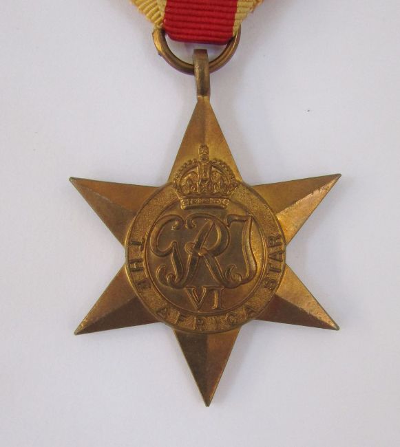 WWII Africa Star, Italy Star, 1939-45 Star, Defence Medal, Victorian Army Temperance Medal, collection of metal ribbons, various badges, reproduction Waterloo Medal and Trafalgar Medal, 4 WWI postcards.