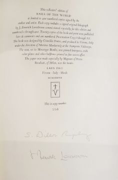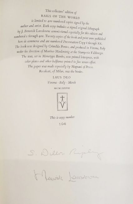 Ripley S.Dillon , Lansdowne J.F. - "RAILS OF THE WORLD: A MONOGRAPH OF THE FAMILY RALLIDAE"  Forty-one colour plates by Lansdowne. M.F. Feheley Publishers Ltd Toronto. 1977,  half red crushed morocco over linen boards in linen slipcase, gilt rules, gilt titles and raised bands, folio