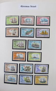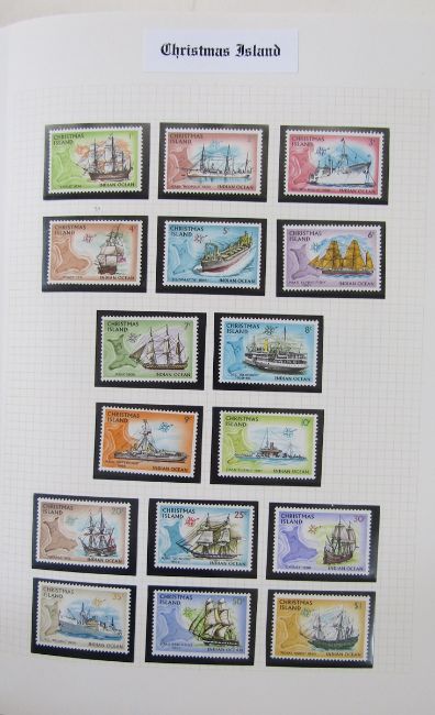 Christmas Island stamps: Large, red “ Senator” album of mint and used definitives, commemoratives from 1958 issue to $1 up to 2009 along with ANZAC issues of Australian Administrative Territories, presentation packs, numerous sets, sheetlets, mini-sheets, blocks, se-tenant, first day covers and prestige booklet, 1000s.