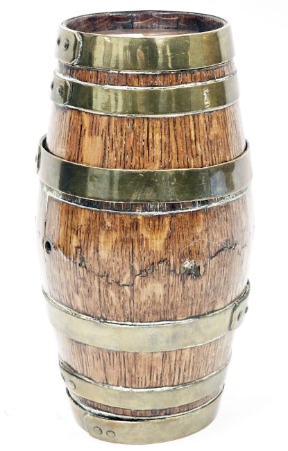 Early 20th century oak brass bound coopered spirit barrel, 23cm long