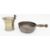 World War I trench art brass shell formed into a pestle and mortar, 14cm high and a Jos Heinrichs copper saucepan with turned wooden handles and the remnants of a sterling silver lining, 22cm diameter (2)