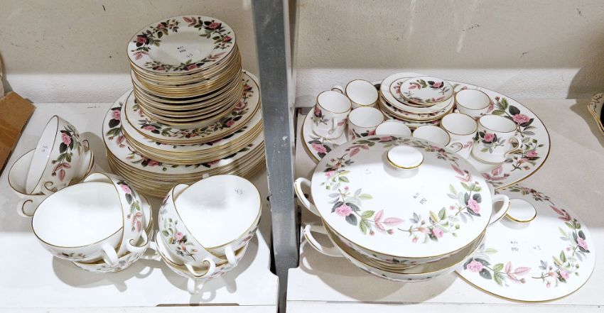 Wedgwood bone china 'Hathaway Rose' pattern part dinner service, printed marks, pattern no.R4317, including two two-handled vegetable tureens and covers, an oval serving dish, eight dinner plates, luncheon plates, side plates, two-handled soup cups, coffee cups and saucers and other items
