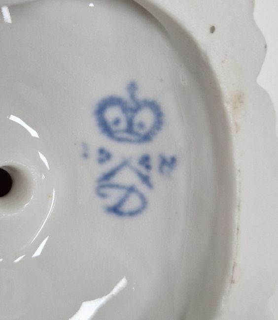Pair of Derby porcelain green ground pastille burners, circa 1830, printed crowned D marks, each baluster urn encrusted with flowers on gilt scroll base, a pair of Derby 'Stevenson & Hancock' white porcelain models of the Welsh Tailor and his Wife, on scroll moulded bases, 13.5cm high, a pair of Sampson Chelsea-style figures of a gallant drummer and musician companion on scroll moulded bases, spurious gilt anchor marks, an English porcelain Imari-pattern two-handled circular bowla 20th century Imari plate and a Bordallo Pinheiro pottery celadon toad (minor damages and repairs)