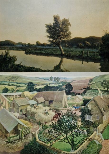 After Algernon Newton (1880-1968) Colour print River landscape with tree, signed in pencil within margin, published by Frost & Reed Limited, bears blind stamp, framed and glazed, image size 48cm x 69cm, together with after Gerald Cooper (1898-1975), colour print, signed in pencil within margin, with blindstamp, framed and glazed, image size 55cm x 71cm, with Frost and Reed (2)