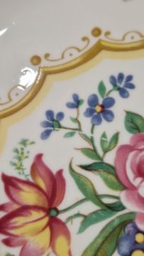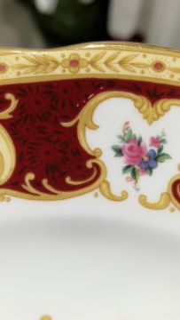 Good overall condition. Light surface scratches on some, chip to base ring on one side plate. General wear and tear.