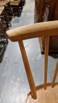 Set of four Ercol blonde elm and beech stickback chairs, model no.737, 40cm wide x 80cm high (4)