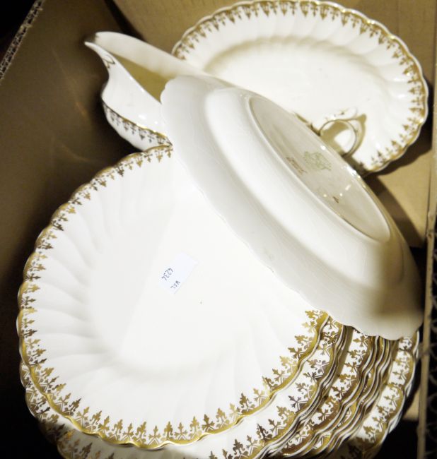 Myott 'Elaine' part service, a Cauldon part service with blue dragons printed on a pale blue ground and a Meito china hand painted part coffee service, the gilt decoration slightly raised (3 boxes)
