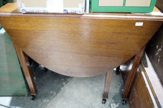 Early 20th century mahogany gate-leg table raised on square tapering inlaid legs with castors, 93cm long