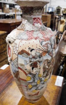 Ceramics including Japanese Satsuma vase, washbowl and jug set, another part wash set, large perfume bottle and other ceramics