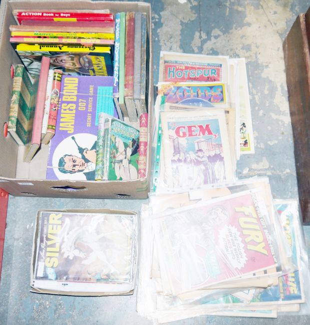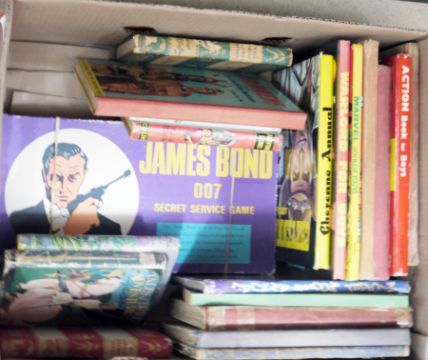 Collection of children's books, annuals and comics dating from the 1930's onwards, including Mickey Mouse weekly comic, Eagle, Victory, Star Trek, Spiderman, Enid Blyton, Roy Rogers the Lone Ranger and a James Bond 007 Secret Service game