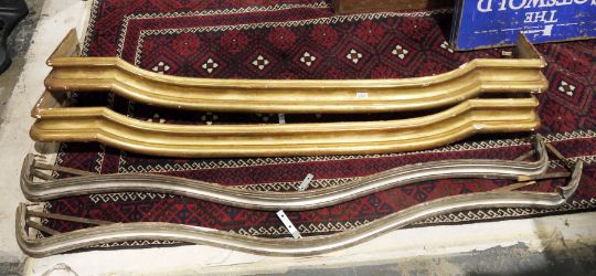 Pair of 19th century giltwood curtain pelmets, 155cm long and a silvered pair of wooden curtain pelmets (one damaged), 162cm long