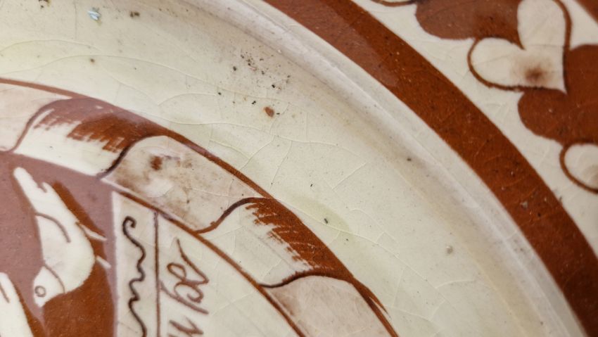 Light surface marks, accretions and bits of paper stuck to them so need a clean., Both with crazing in places. General wear and tear.