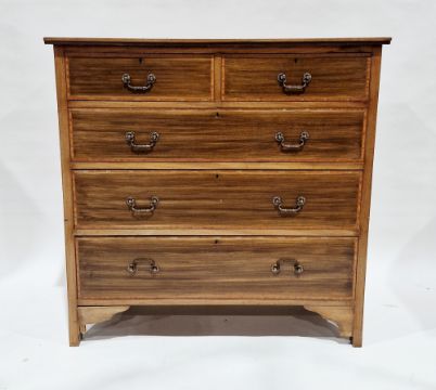 Edwardian mahogany and cross-banded chest of two short over three long graduating drawers with brass swan neck handles, 103cm high x 104.5cm wide x 49cm deep