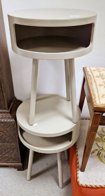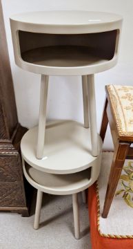 Pair of Habitat Bumble circular bedside tables with a grey finish, 56cm high x 40cm diameter (2)