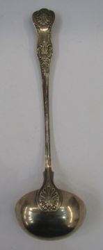 Victorian silver soup ladle, London 1860, The Portland Co, Queen's pattern, 34.5cm long, 9.81ozt