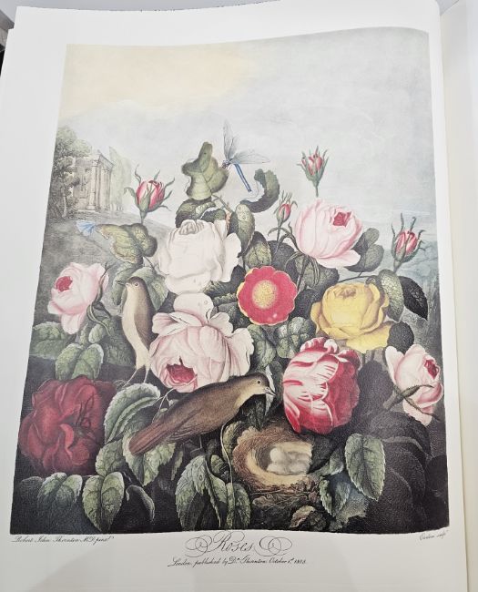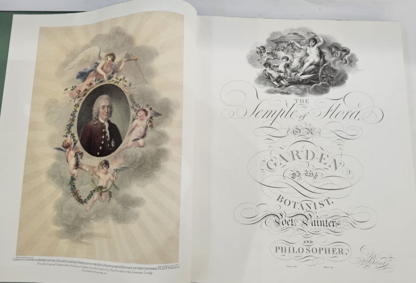 Folio Society [Thornton, Robert] "The Temple of Flora", Harris, Stephen "Author of the commentary", full size facsimile limited to 1,980 hand numbered copies with two limited edition facsimile prints which were free at the time of purchase of the book, both are framed, quarter goat skin with pictorial and gilt front board in clamshell fitted box, the commentary fitted in below (3)