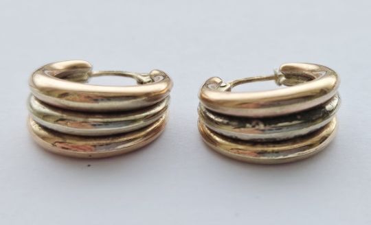 Pair of 9ct gold three-colour hoop earrings, 3.2g approx.
