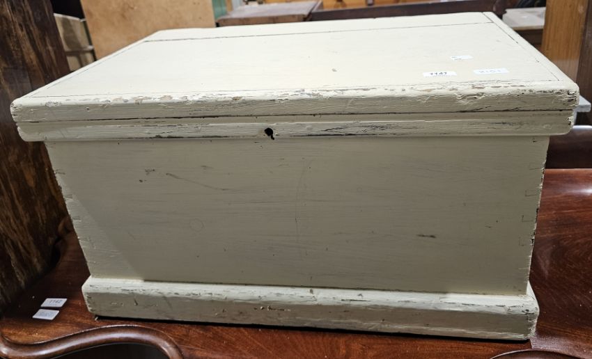 19th century painted pine blanket or tool box, with hinged lid and iron carrying handles, 36cm high x 65cm wide x 43cm deep Property of Dunkirk Manor, Theescombe, Stroud