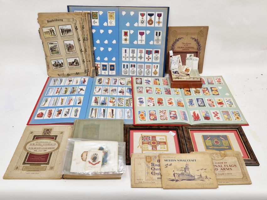 Collection of cigarette cards and silks including three partially filled albums including Player's, Will's, Churchman's, Turf and Mitchell's (mostly loose but some stuck-in), loose and packets of cards, cigarette card albums, Our South Africa past and present sticker book, military silks, etc