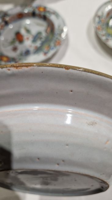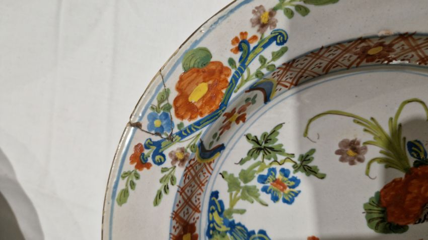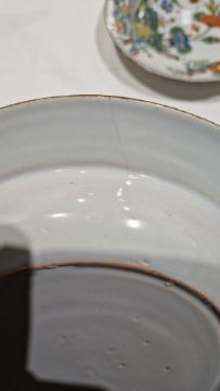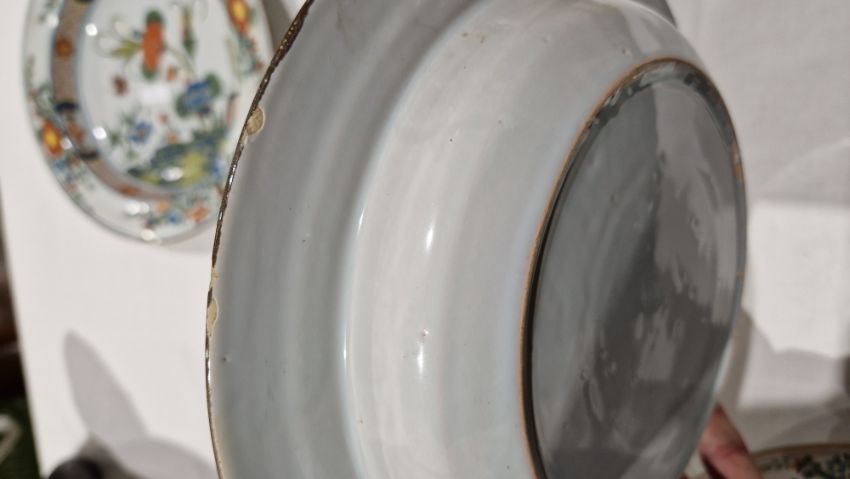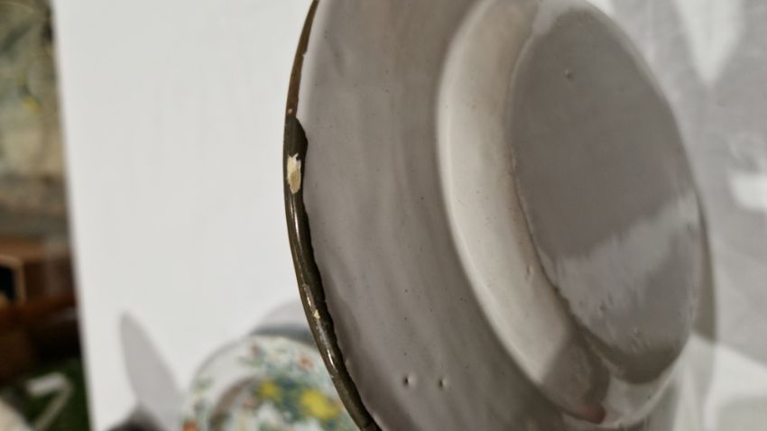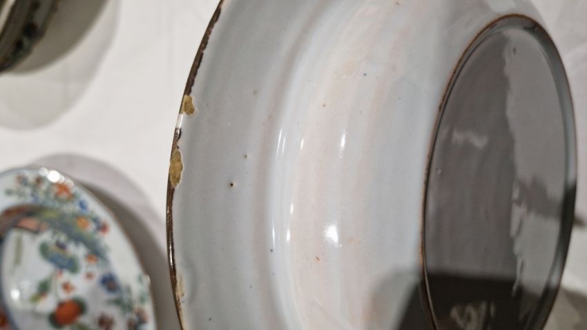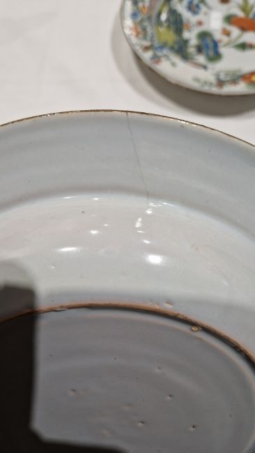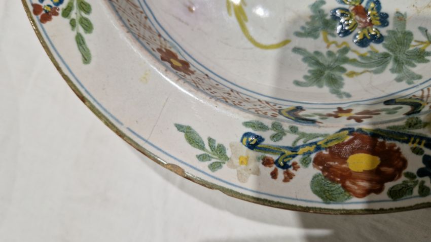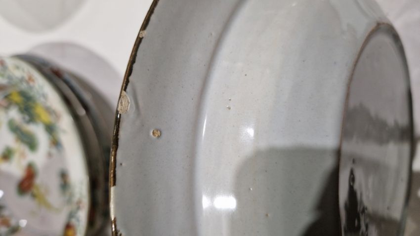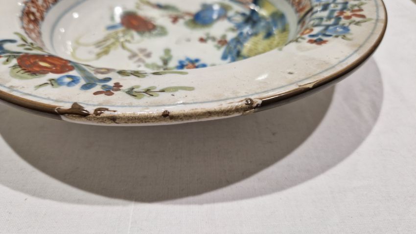 Surface scratches, some with wear to decoration. Chips to the edges on all, three bowls with hairlines and one with repair. General wear and tear.