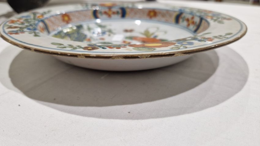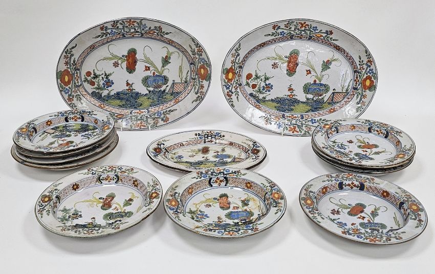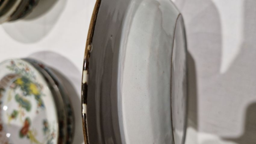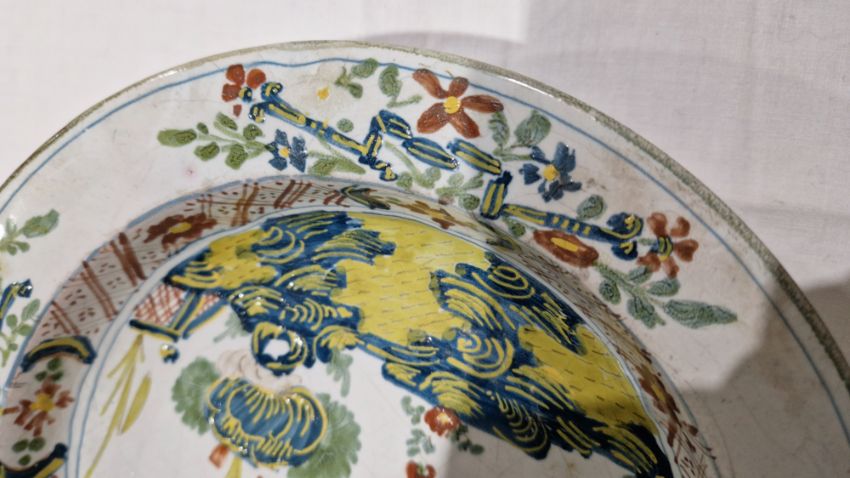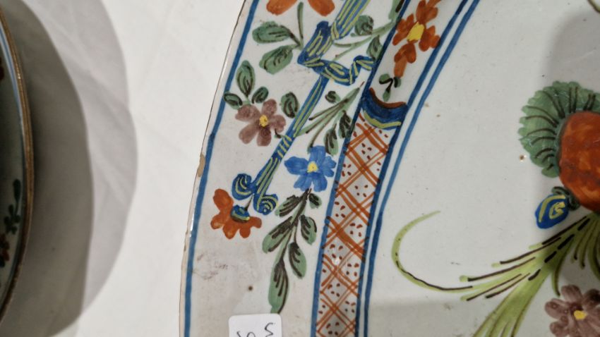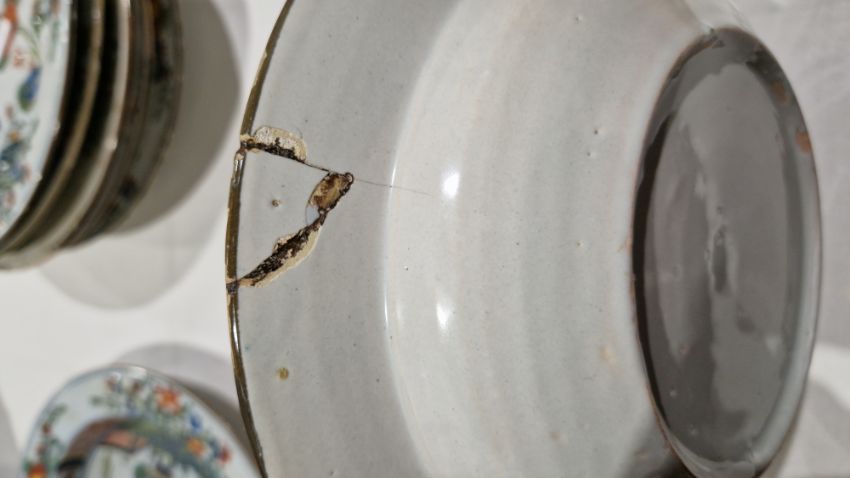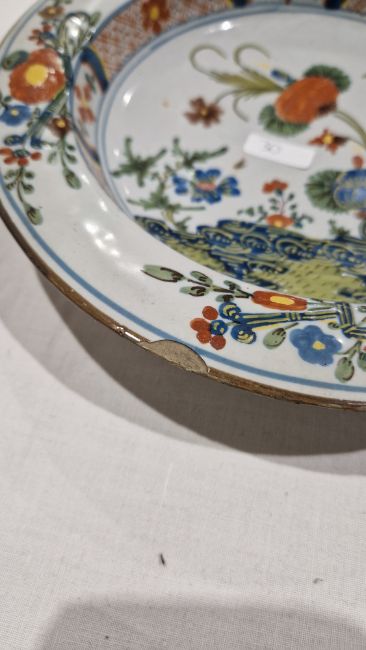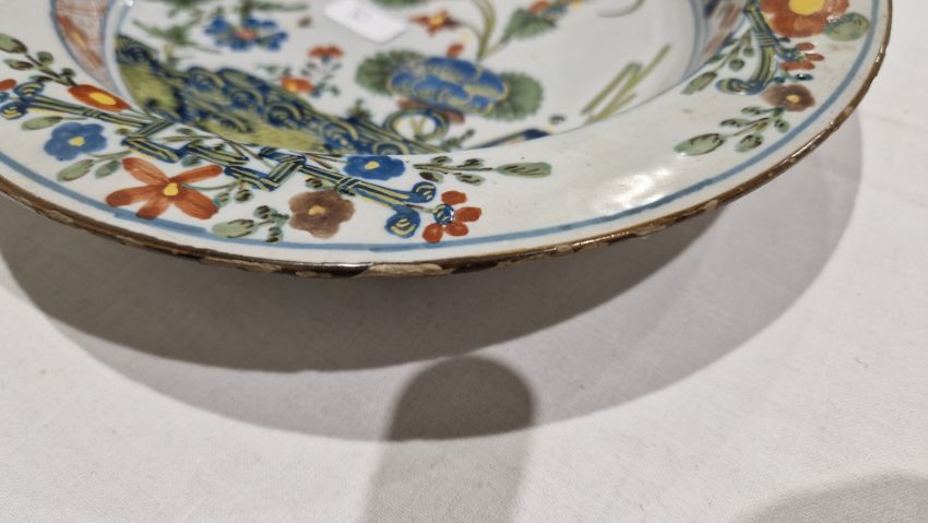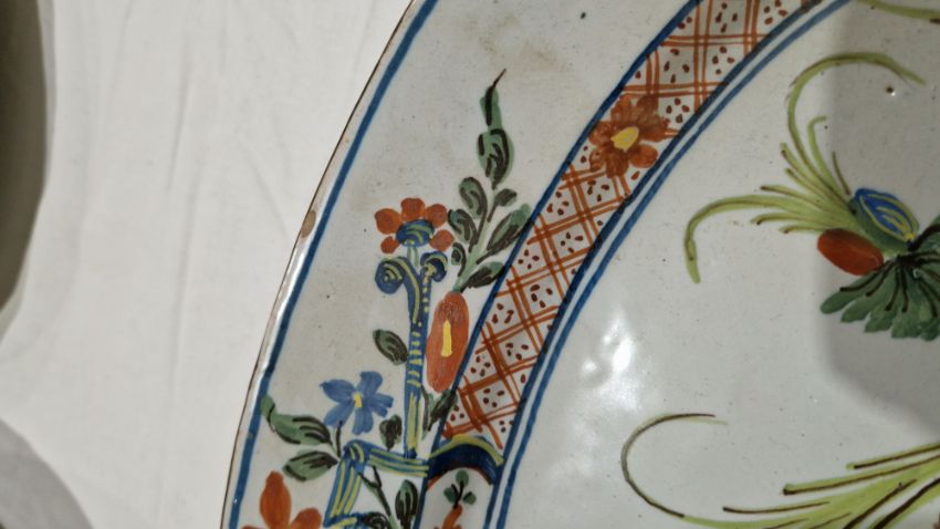 Surface scratches, some with wear to decoration. Chips to the edges on all, three bowls with hairlines and one with repair. General wear and tear.