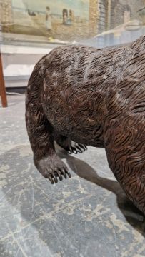 Good condition. Some light surface scratches to glass top. As stated, animals are bronze. General wear and tear.
