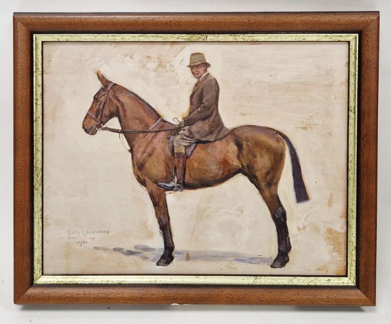 Lucy Lockwood (British, active 1896–1934) Oil on board Study of a gentleman on a hunter, signed and dated 1931 lower left, framed, image size 23cm x 30cm Condition Report Good overall condition, splash mark at centre of painting so needs a clean. General wear and tear.