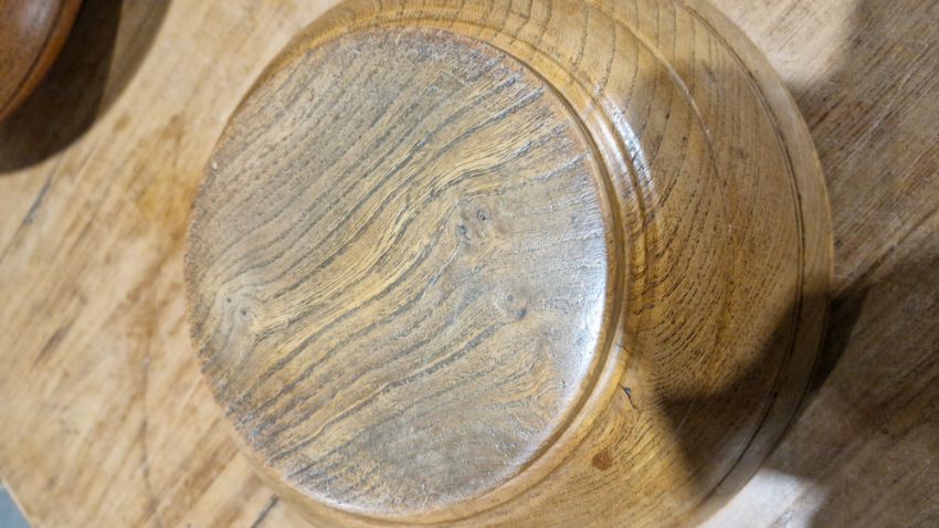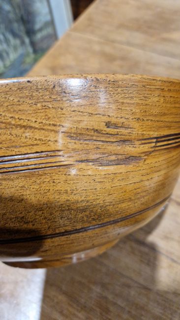 Surface scratches and scuffs to both, split and possible replaced section to to centre of larger bowl. General wear and tear.