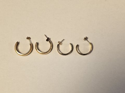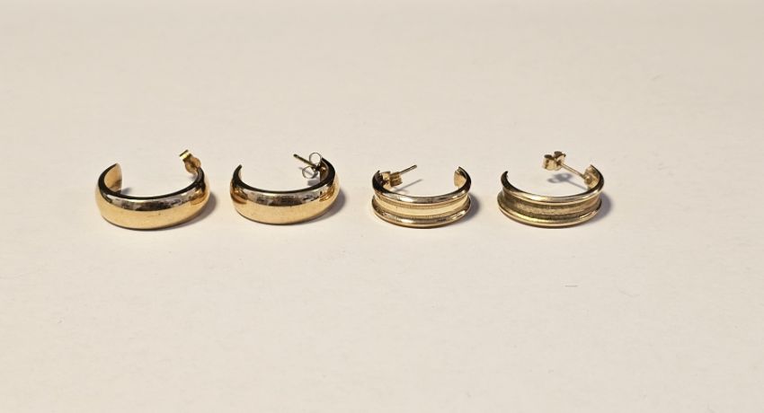 Four half-hoop yellow metal stud earrings, the clasps on each stamped 375, gross weight 2.5g approx.