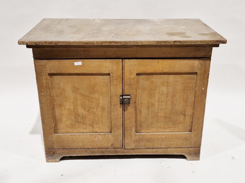 19th century wooden low cupboard, the rectangular top over two doors opening to a single shelf, two faux drawers to back, on bracket feet, 72cm high x 97cm wide x 50cm deep