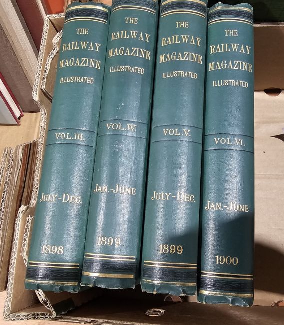 Large quantity of the Railway Magazine dating 1897, 98 and 99, 1900 through to 1919, 1920 through to 1929, 1930 through to 1939, 1940 through to 1949 which includes 42 and 43 being one volume, 44 and 45 being one volume, 46 and 47 being one volume and  48 and 49 being one volume, 1950 through to 1959, 1960 through to 1963, cloth with gilt titles, some backstrips faded in the early editions, i.e. 1901, 1906, etc, 1898, 99 x 2 and 1900 green cloth with black and gilt titles (6 boxes)