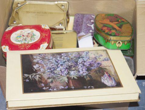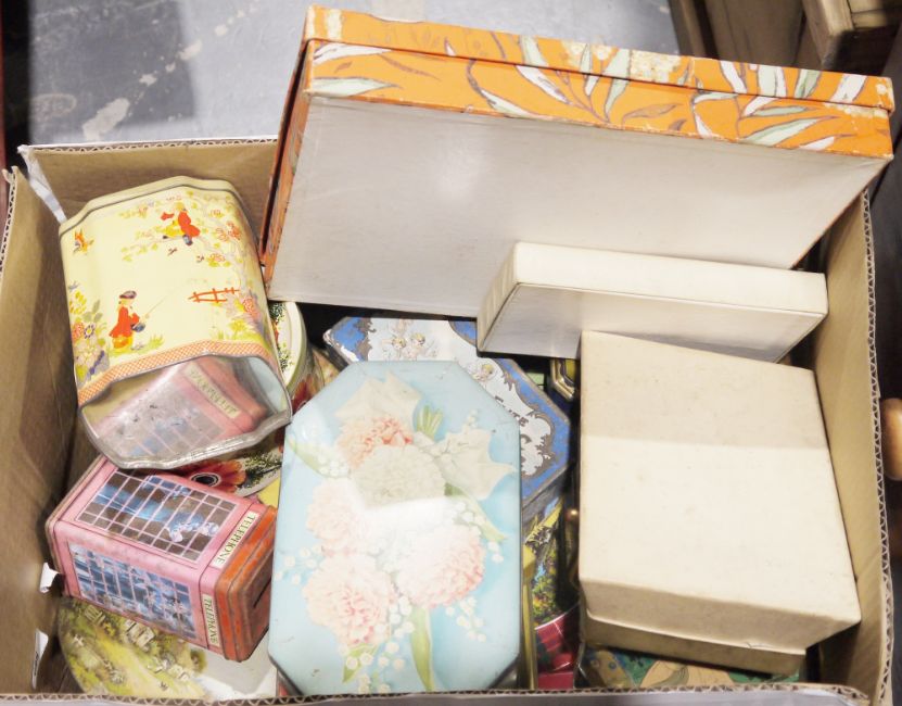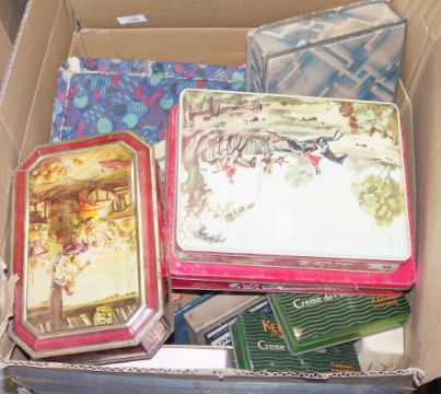 Extensive collection of biscuit tins and boxes to include kit kat, Scribbans-Kemp, Peek Frean and others. (3 boxes).