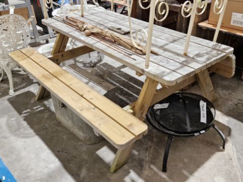 Six-seater wooden picnic table with fold-up seats
