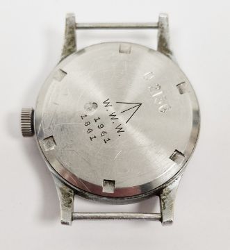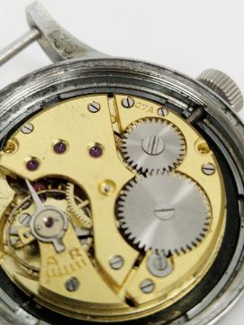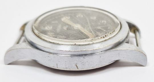 All watches are sold untested for time keeping accuracies. Upon inspection this watch is not ticking. Winding crown adjusts and moves hands, however the dial moves/rattles when the crown is adjusted. Dial cover is heavily scratched and slightly discoloured. Outer case is marked and scratched throughout, commensurate with age and previous use. Case diameter approx 36mm