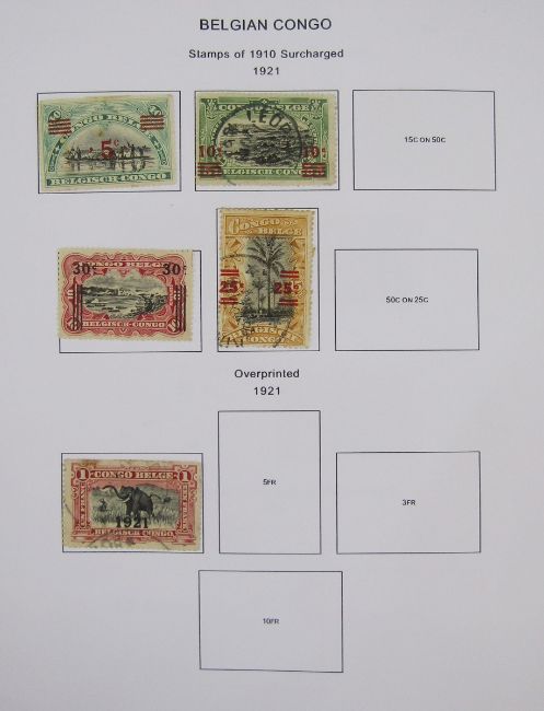 Stamps of Belgium & Colonies: Box of 4 albums (3 bespoke) and 2 stockbooks of mint and used from first issues to 2010s including definitive, commemorative, postage due, Red Cross, charity, air, railway, pre-cancels, semi-postal, occupation plus Congo from 1886 & later Rwanda-Urumdi/Rwanda with less-common over-printed/surcharged issues and higher values to 100f seen. 1000s (1 box)