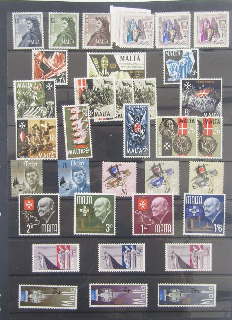 Stamps of Gibraltar & Malta: QV-QEII collection in 2 blue albums of mostly definitives and commemoratives with a few postage due in Malta, mint and used, sets, first day covers and others plus postcards, 100s
