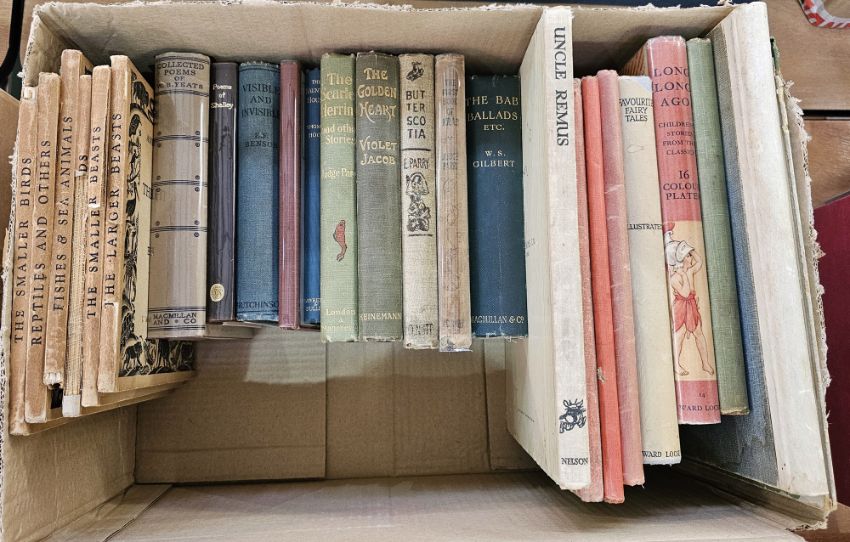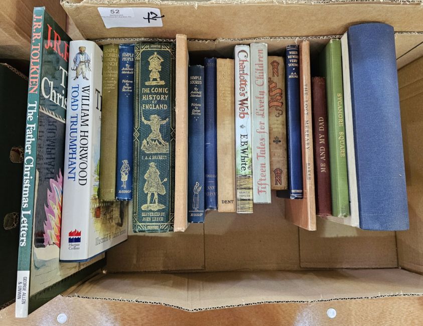 Assorted late 19th century and 20th century children's books to include:-  Lord Alfred Douglas [The Belgian Hare] "The Duke of Berwick - a Nonsense Rhyme", illustrated by Tony Ludovici, Leonard Smithers & Co (1899), illustrations, oblong folio, pictorial boards Fricero, K J "Little French People", Blackie & Son, colour plates throughout, pictorial ep, pictorial pastedown to front board, "Uncle Remus", published by Nelson, pictorial boards Dalgleish, Eric Fitch "Animals in Black and White", 5 vols, vol 1, 2, 3, 5 and 6, published by J M Dent & Sons 1929, backstrips suffering, pictorial boards [Agnes and Dorothy Hilton]  "Me and My Dad and Others by One of Them", Simpkin, Marshall, Hamilton, Kent & Co 1909, Quantock Cameos Shepard, Ernest H (ills) and Struther, Jan "Sycamore Square and Other Verses", Methuen 1932, plates and illustrations, green cloth with gilt figure of a boy walking with a dog on the front board, books illustrated by George Morrow Beckett, Gilbert Abbott "The Comic History of England", illustrated by John Leach, published at the Punch Office 1864, illustrations and colour plates, original publishers green cloth and various other volumes (2 boxes)
