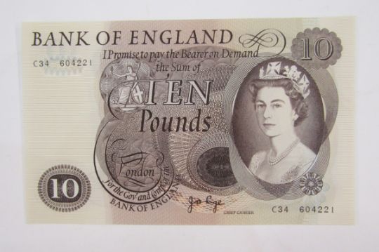 Bank of England £10, signed J B Page, 1971, prefix C34 604221, brown, Queen Elizabeth II at right, (BE155c), uncirculated