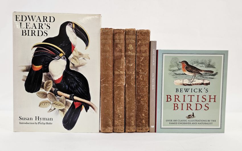 Thorburn, A , F.Z.S. "British Birds ...", in four vols, 2nd edition Longmans Green & Co 1916, colour plates with tissue guards, text pages some foxing, all four vols red cloth with shelf wear, backstrips faded, corners bumped (bought as seen)  "Bewick's British Birds", Arcturus 2010, illustrations throughout, d-w not price clipped Hyman, Susan (ed) "Edward Lear's Birds", Weidenfeld & Nicolson 1980, colour plates, many double, blue cloth, d-w  Ennion, Eric "One Man's Birds", The Wildlife Art Gallery, colour and other illustrations throughout, brown cloth, d-w (7)
